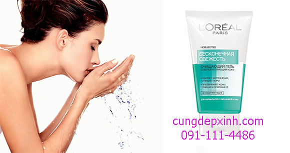 - Làm ướt da và massage nhẹ với gel rửa mặt L’Oreal.
